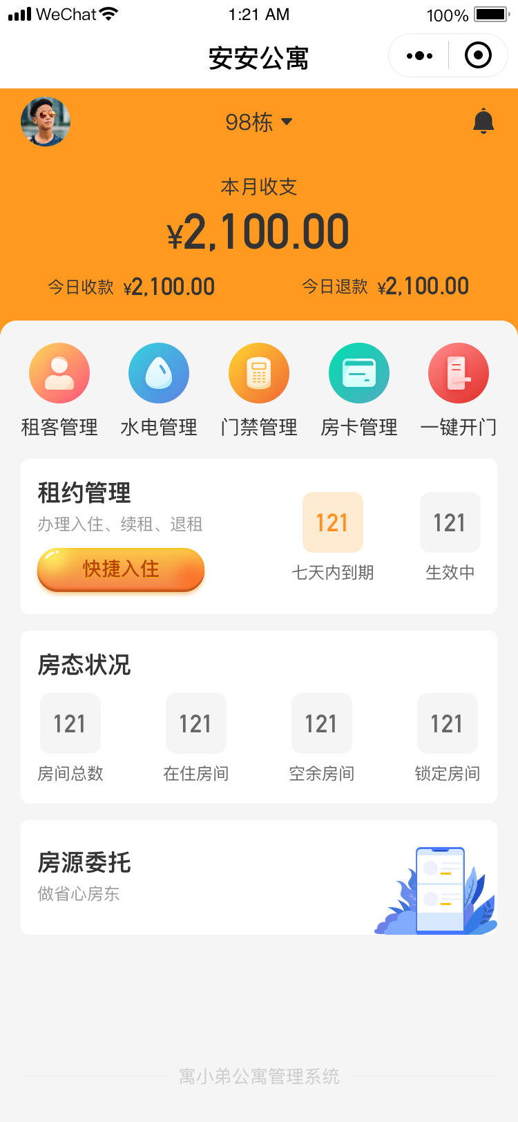 你們公司的那個公寓管理系統(tǒng)好強(qiáng)大啊,安裝了智能鎖后,我現(xiàn)在用微信就能觀察幾十個房間入駐情況,還能催租,又不用上門跑,真爽!